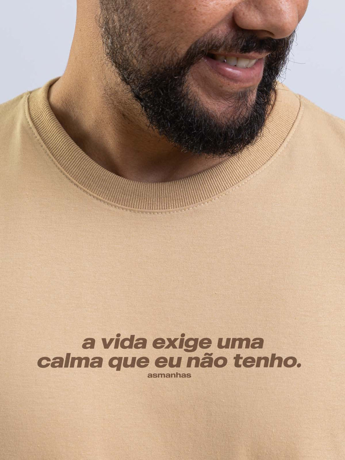 Camiseta Masculina A vida exige uma calma que eu não tenho Quem disse que paciência...