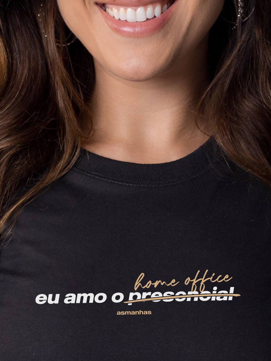 Camiseta Feminina Eu amo o presencial (Home Office) Presencial? Só se for no cafezinho da...