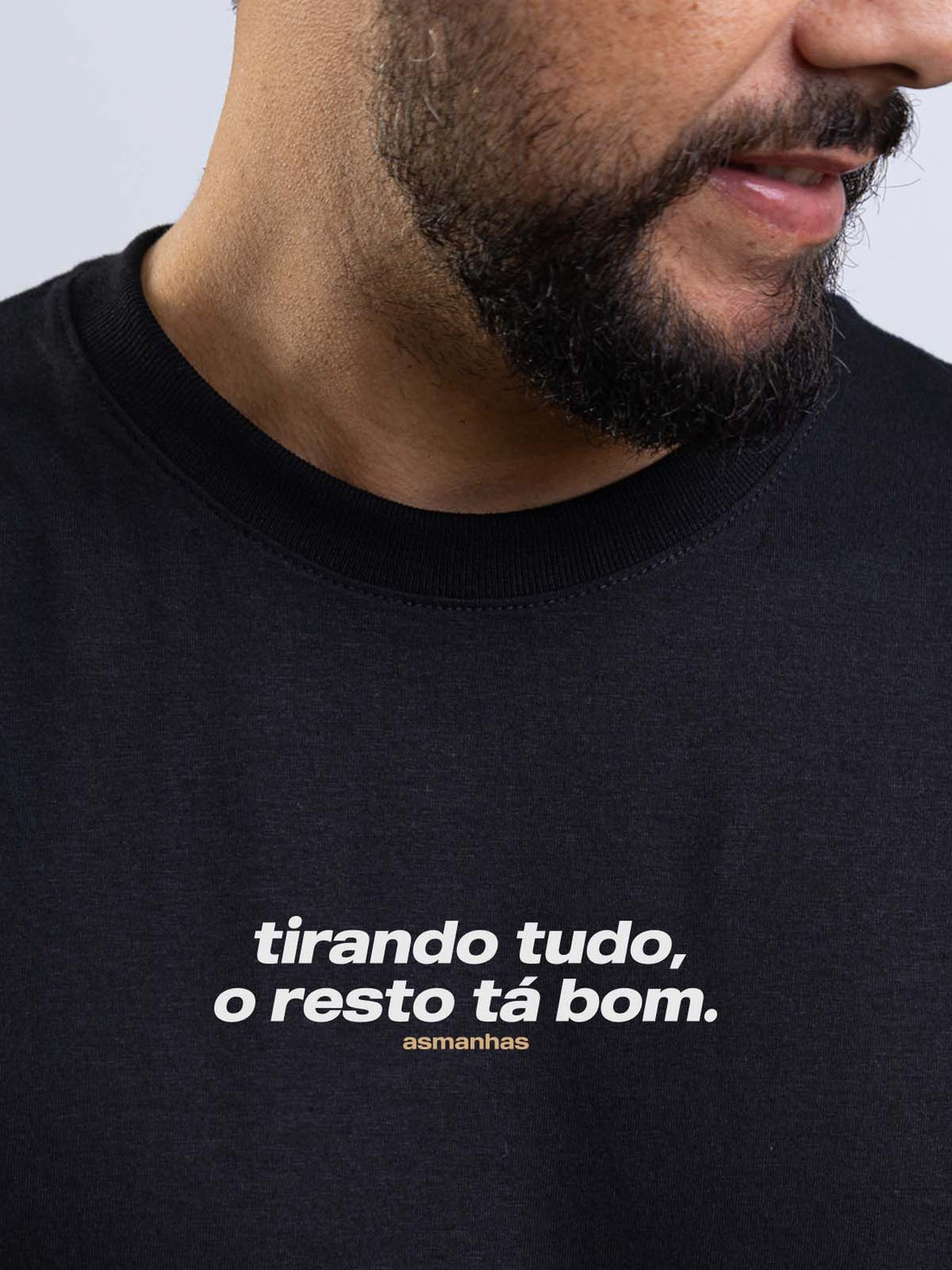 Camiseta Masculina Tirando tudo, o resto tá bom Um resumo de vida em forma de...