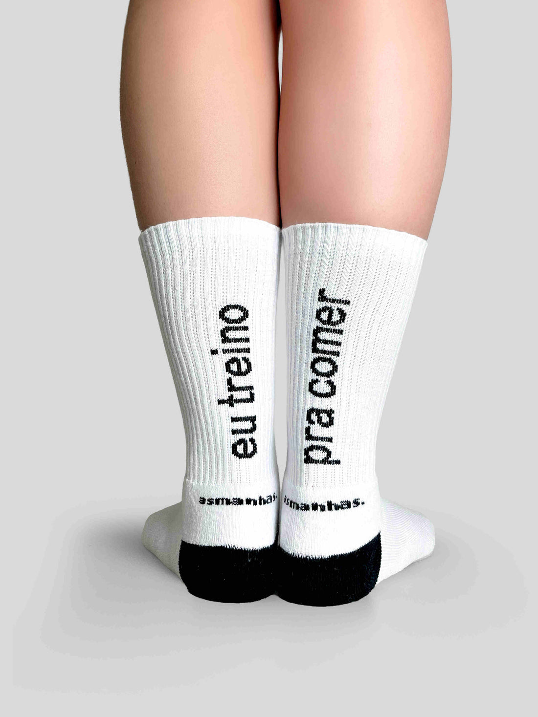 Meia Eu Treino Pra Comer Asmanhas - Branca