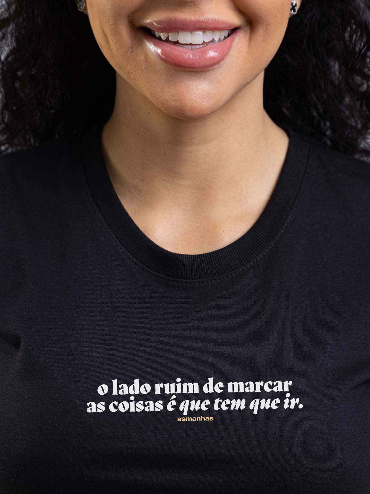 Marcar é fácil, o problema é quando a data chega. Essa camisa é pra quem ama planejar o rolê, mas na hora H queria mesmo era estar no sofá maratonando série. Perfeita pra deixar o recado com humor, sem precisar inventar desculpa.