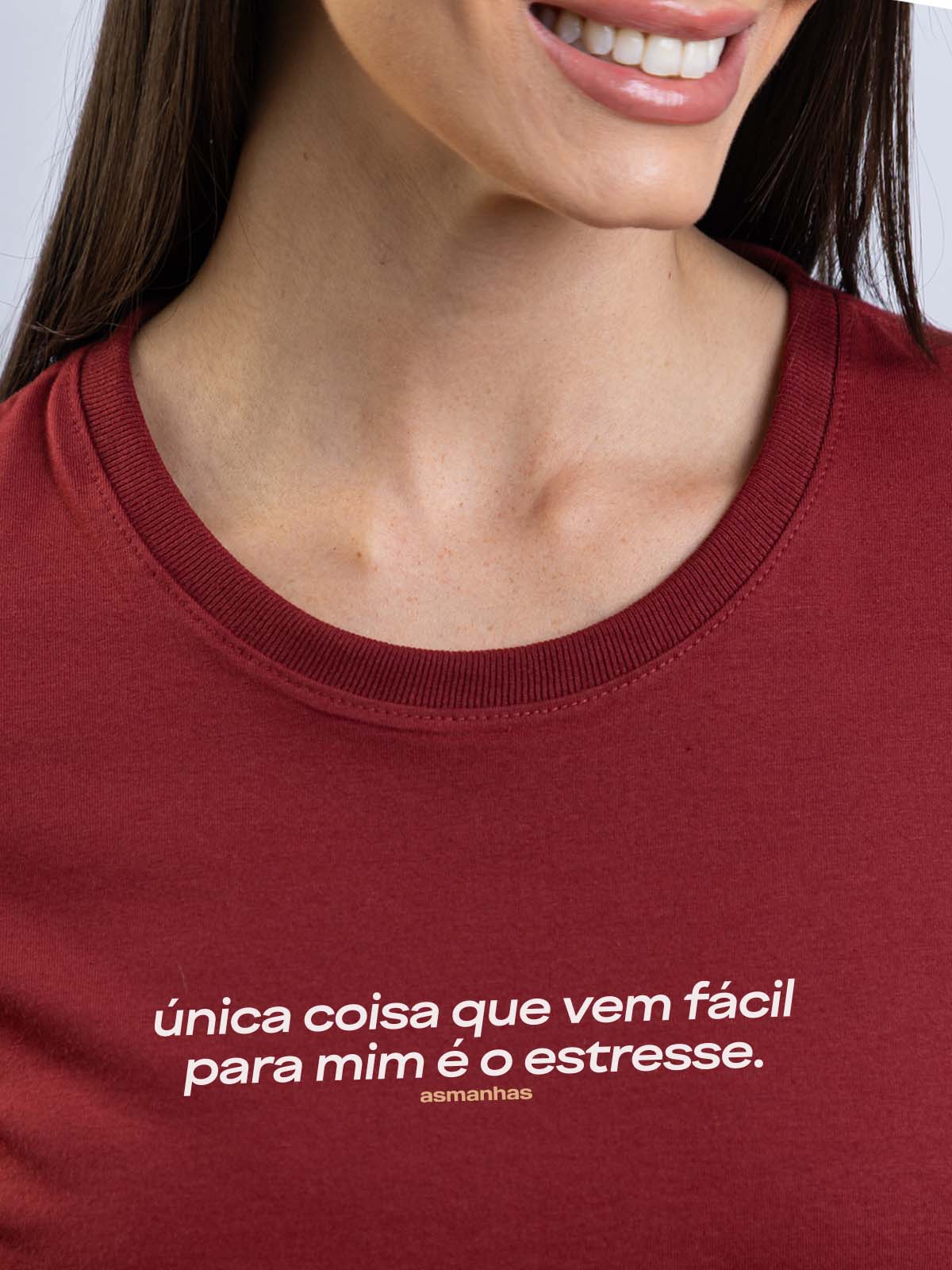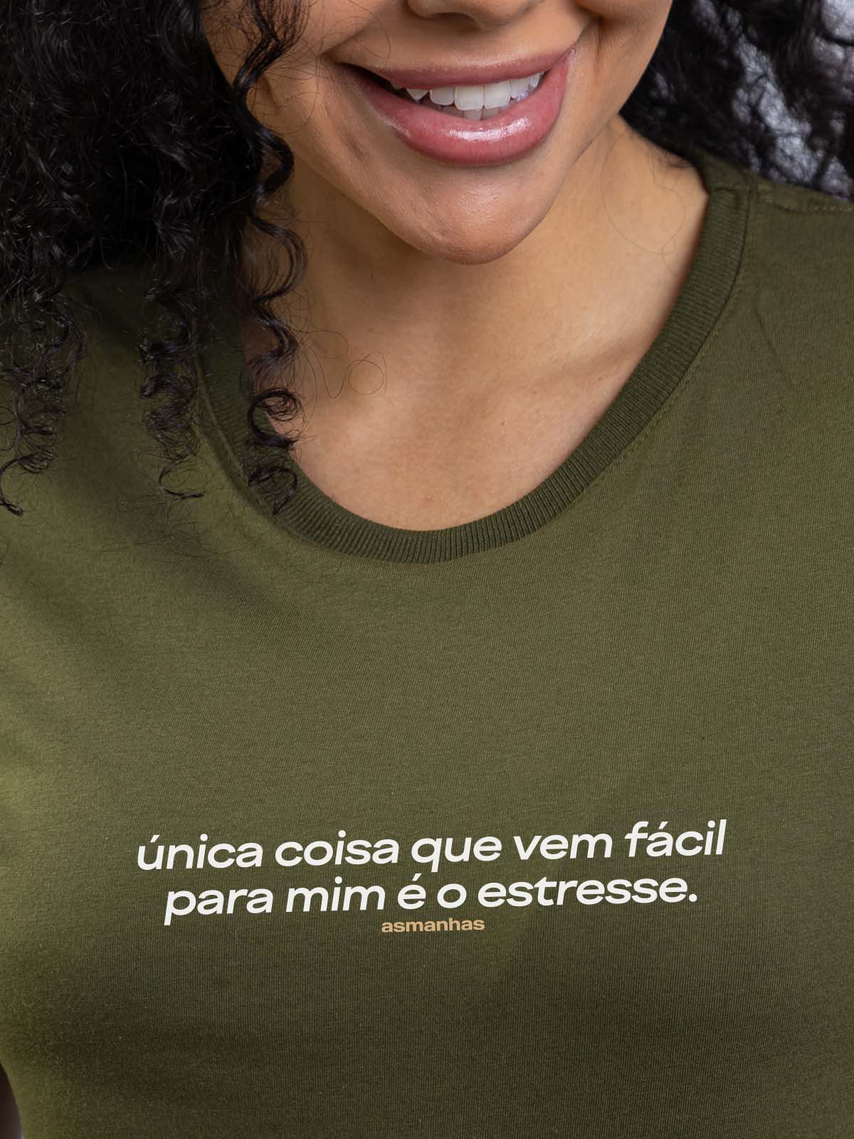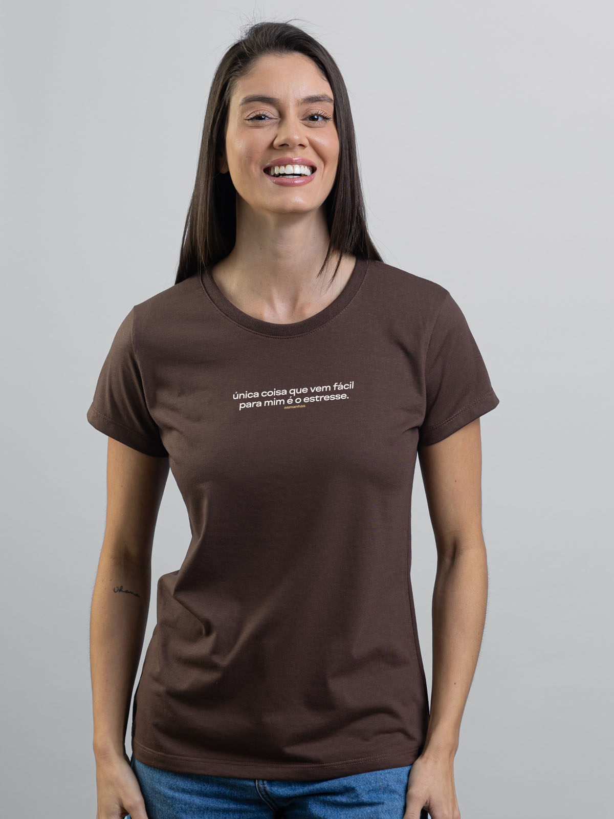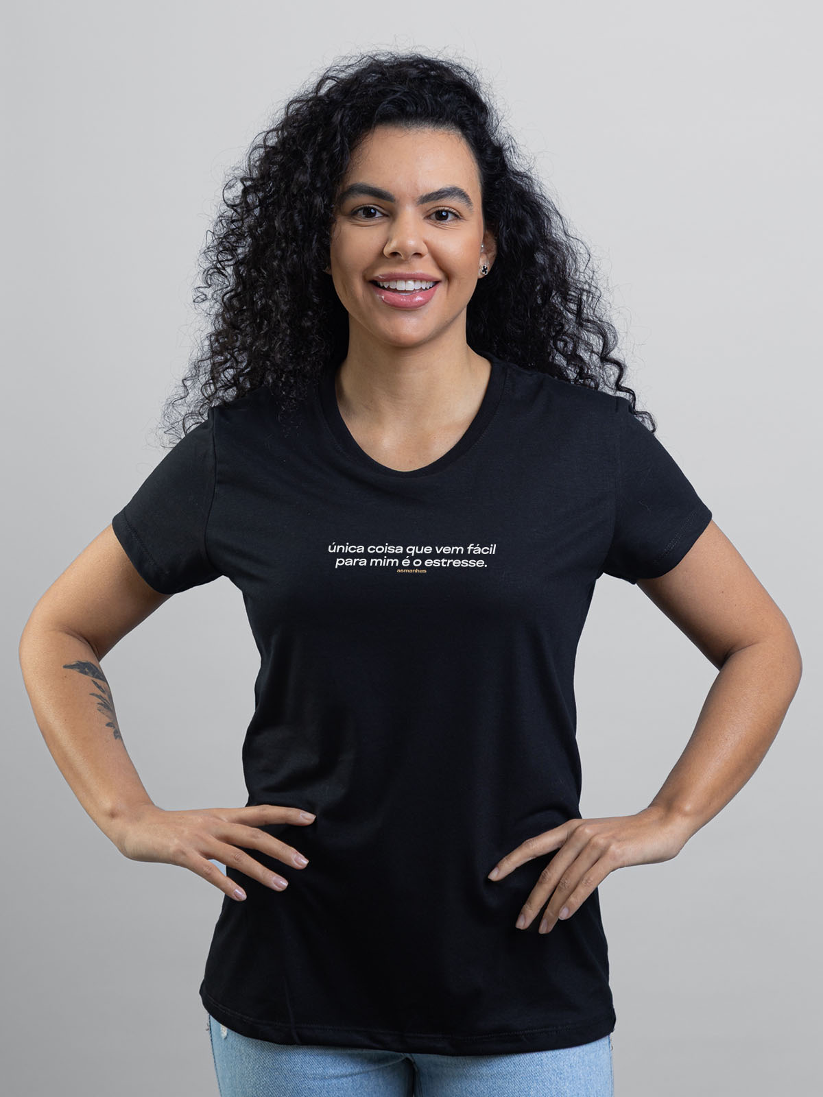Camiseta Feminina Única coisa que vem fácil pra mim é estresse