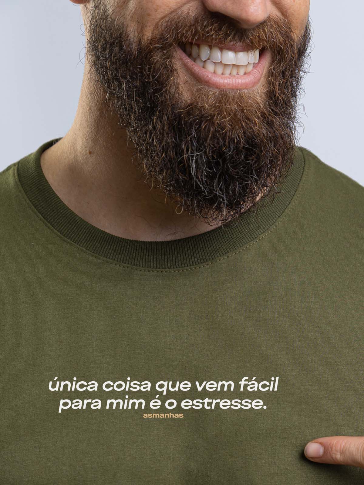 Camiseta Masculina Única coisa que vem fácil pra mim é estresse