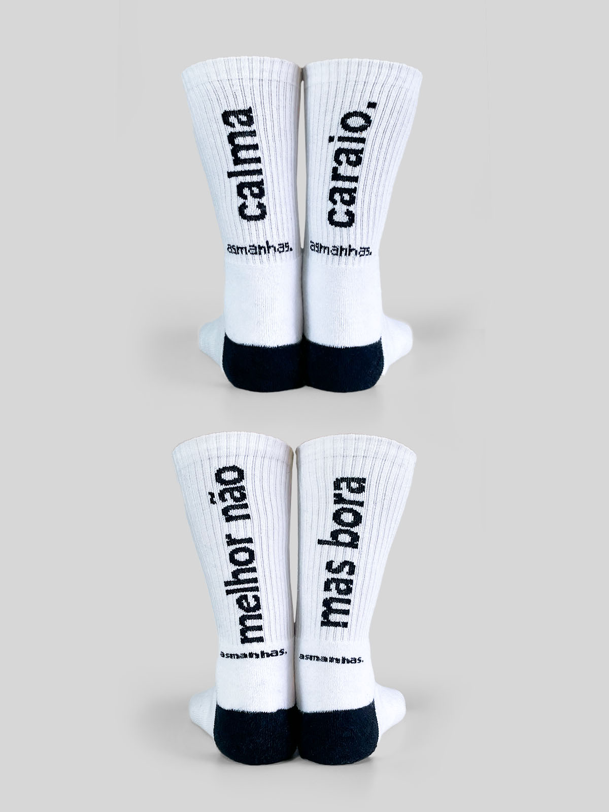 Nossas meias são feitas em algodão, possuem elastano na medida certa e são bordadas, ou seja, mais um produto pensado e desenvolvido pra durar (e se comunicar por você rs).