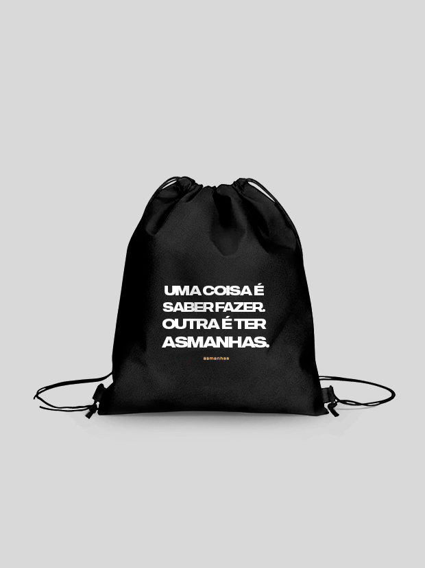 - Design: Apresenta um design elegante todo preto com a frase divertida "uma coisa é saber fazer, outra é ter asmanhas." em destaque, refletindo a essência criativa da nossa marca.